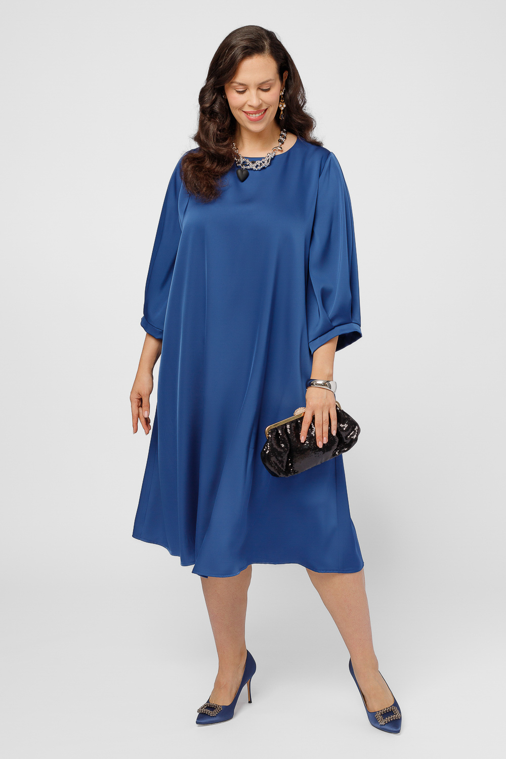 Описание: Женское нарядное синее атласное макси платье больших размеров от бренда Интикома (Intikoma)
