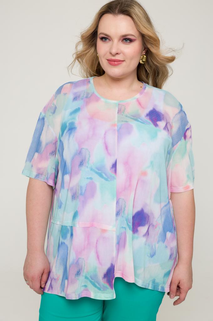 Описание: Женская разноцветная удлиненная блузка туника больших размеров от бренда Терра (Terra) из смемовой ткани