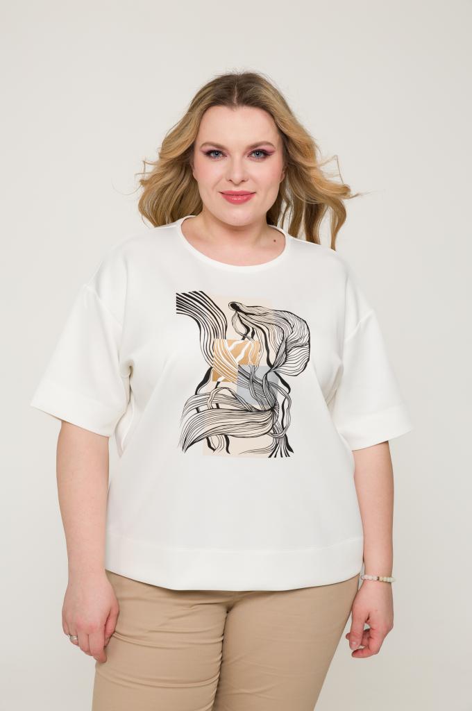 Описание: Женская белая с принтом блузка большого размера от бренда Терра (Terra) из плотной смесовой ткани
