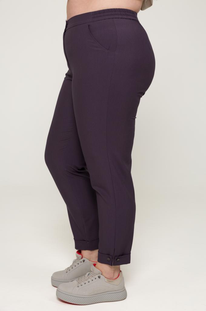 Женские пепельно-фиолетовые зауженные книзу брюки больших размеров от бренда Terra (Терра). Брюки выполнены из смесовой такни, тянутся хорошо, на талии полурезинка