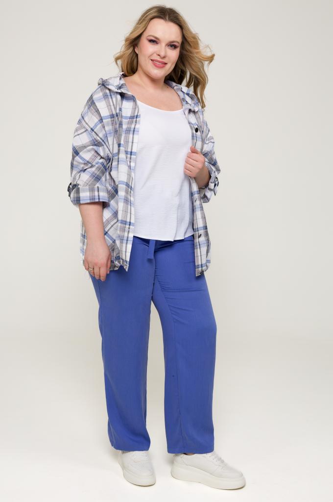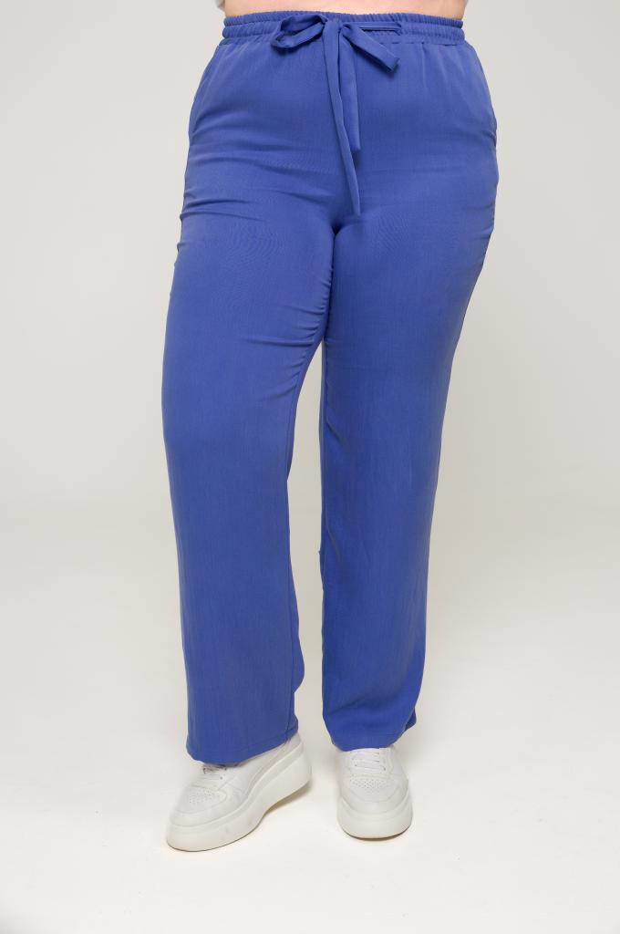 Женские синие широкие брюки большого размера от бренда Terra (Терра). Брюки выполнены из смесовой ткани, талия на резинке с завязками