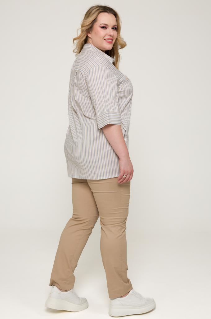 Описание: Женская рубашка с коротким рукавом в серо-бежевую полоску больших размеров от бренда Terra (Терра)