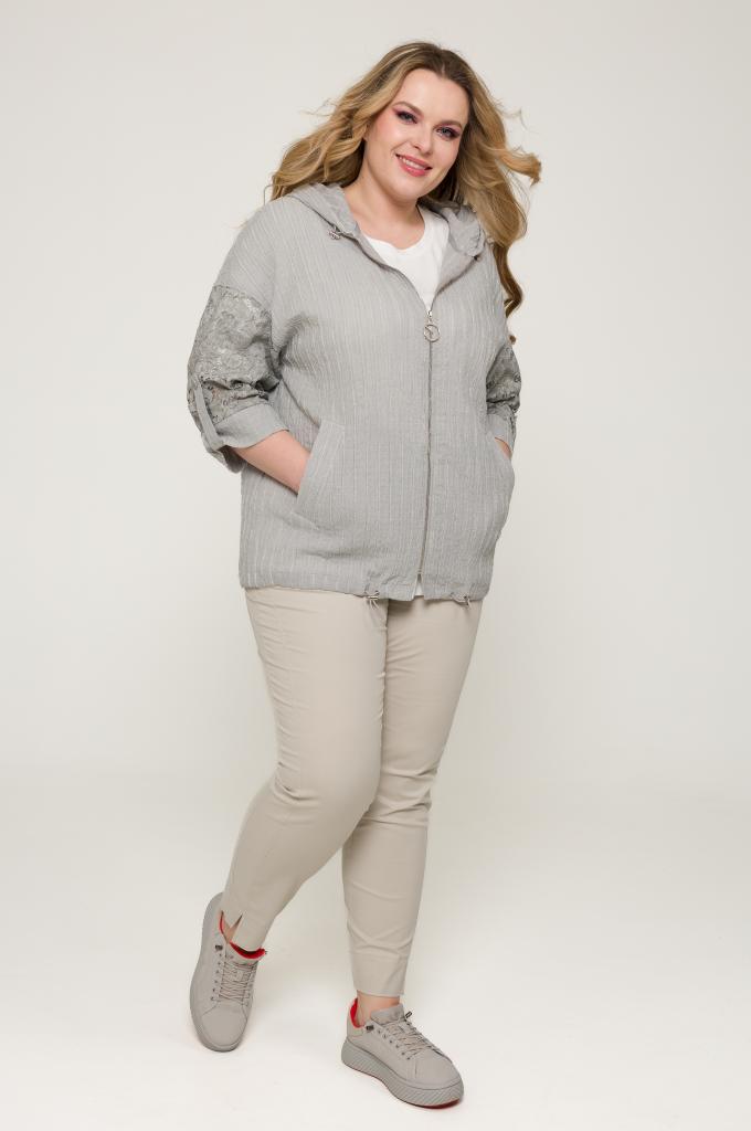 Женский светло-серый пыльник большого размера от бренда Terra (Терра). Пыльник имеет укороченный рукав, декорированный кружевом. Незаменимая вещь на прохладные летние вечера или как дополнение к образу