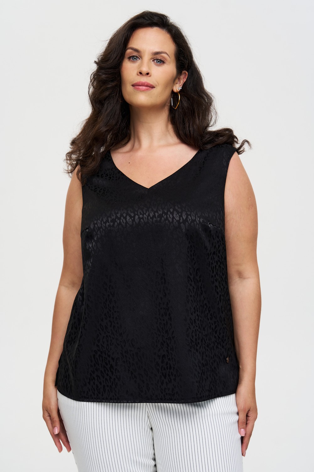 Женский черный топ большого размера из вискозы от бренда Intikoma (Интикома). Изделие выполнено без подкладки. Топ подходит и на каждый день, и для более торжественных случаев.