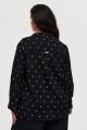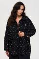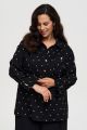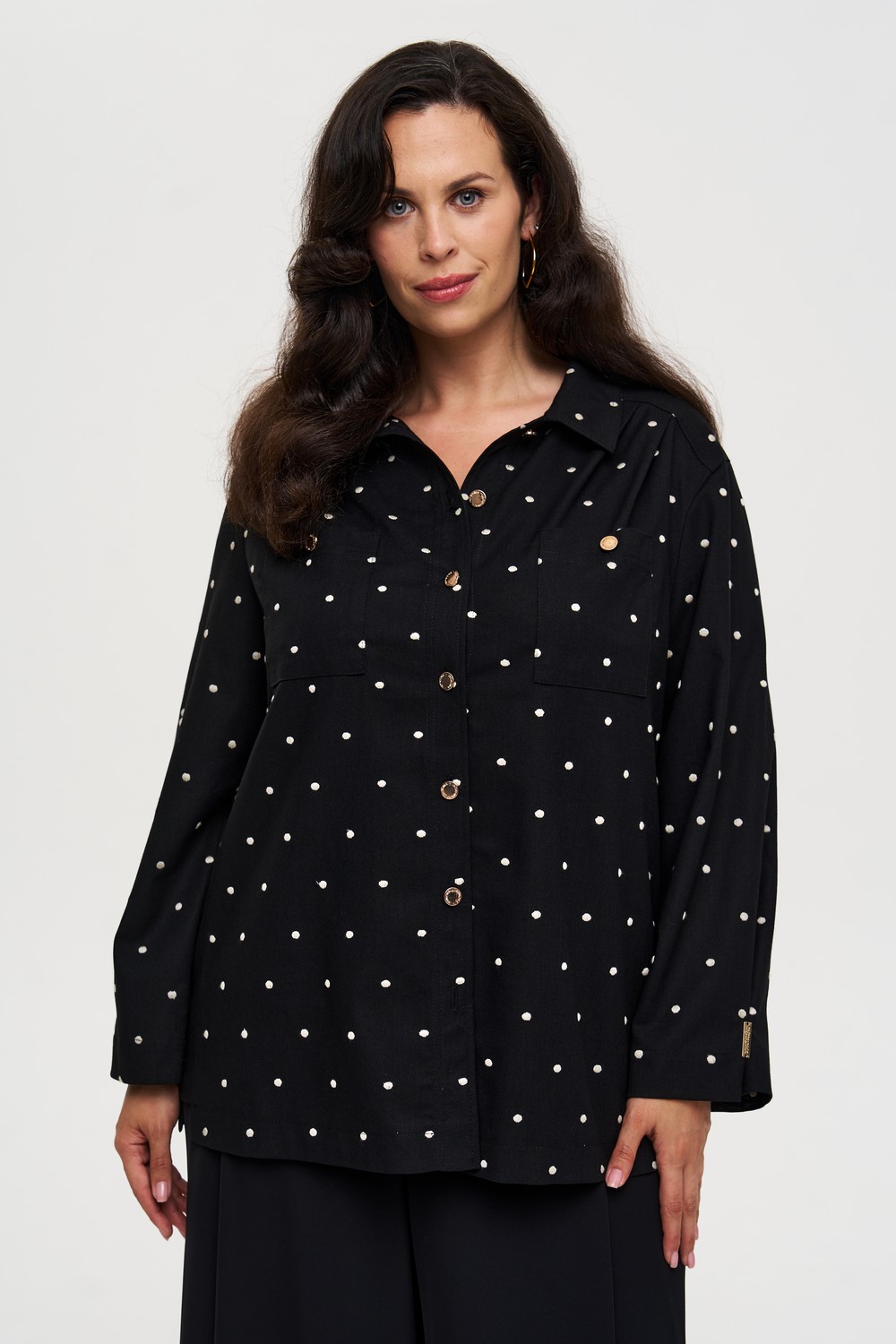 Женская черная льняная рубашка с принтом горох больших размеров от бренда Интикома (Intikoma). Вышивкой в виде гороха, застежка на пуговицах