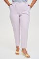 Женские сиреневые зауженные брюки больших размеров из смесовой ткани от бренда Интикома (Intikoma). Эластан дает возможность изделию не растягиваться в районе коленей и принимать изначальную форму после стирки.