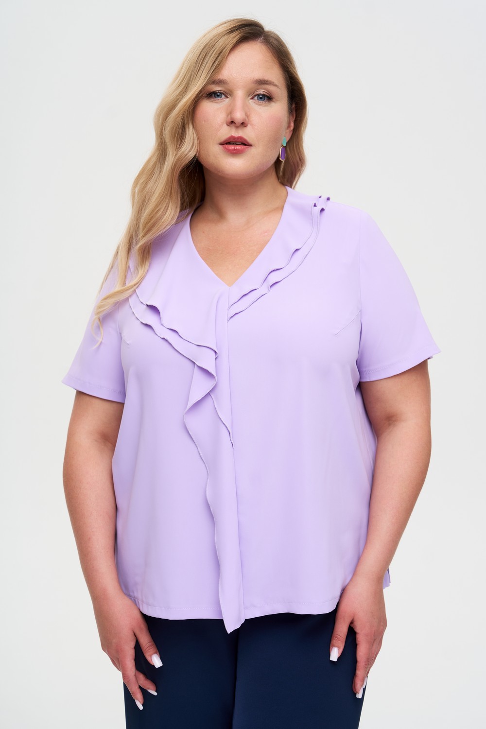 Описание: Женская шелковая сиреневая блузка больших размеров с жабо от бренда Интикома (Intikoma).