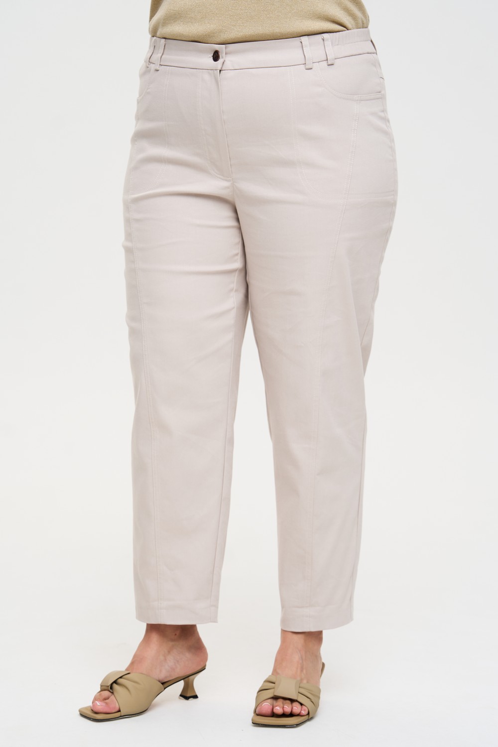 Описание: Женские бежевые слегка зауженные брюки больших размеров из смесовой ткани от бренда Интикома (Intikoma)