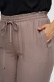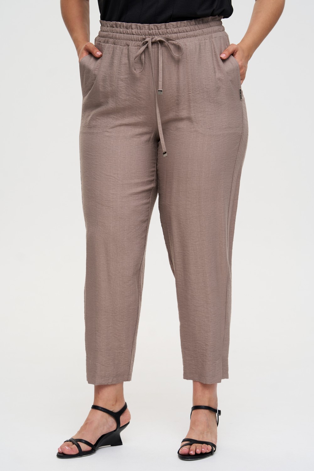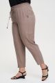 Женские брюки бананы больших размеров в цвете капучино из вискозы от бренда Интикома (Intikoma). Детали: укороченная длина брюк, пояс на резинке с кулисой регулируется шнуром. Карманы в шве, фигурная кокетка по спинке.