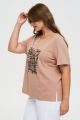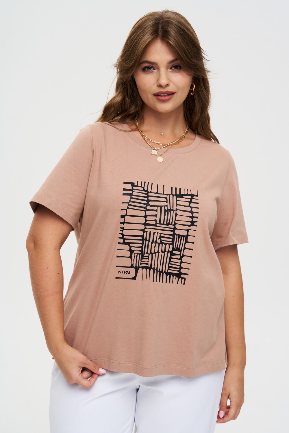 Женская бежевая с принтом футболка больших размеров из высококачественного хлопка от бренда Интикома (Intikoma). Детали: прямой силуэт, плечевой пояс на месте, округлая горловина, короткий рукав.