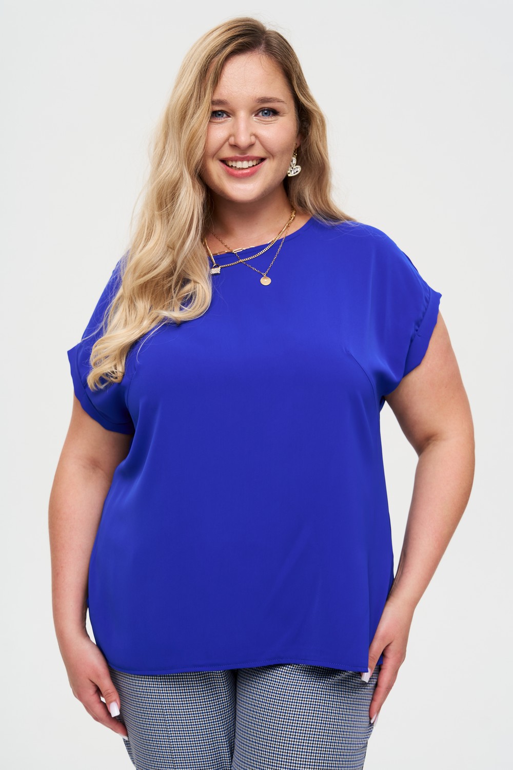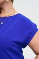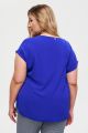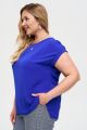 Женская базовая синяя блузка больших размеров из смесовой ткани от бренда Интикома (Intikoma). Силуэт свободного кроя и прямая линия делает топ универсальным и комфортным вариантом для большинства типов фигур.