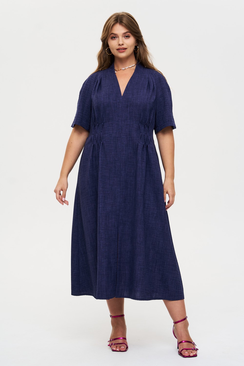 Описание: Женское синее миди платье большого размера из смесовой ткани от бренда Интикома (Intikoma).