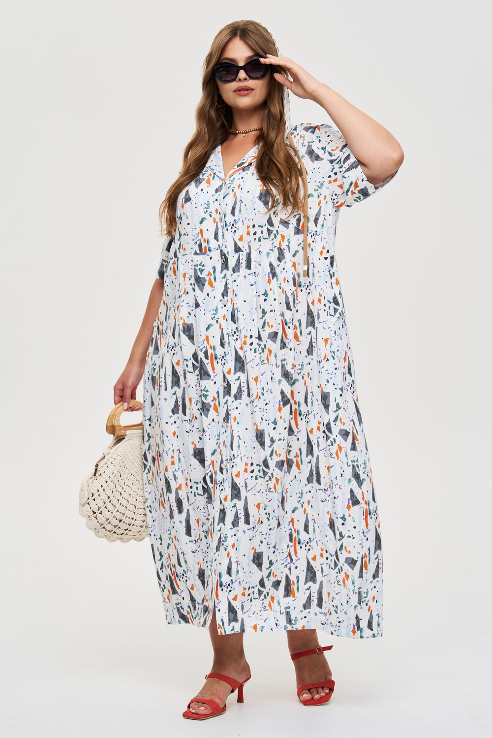 Описание: Женское разноцветное макси платье больших размеров из вискозы с кружевным капюшоном от бренда Интикома (Intikoma)