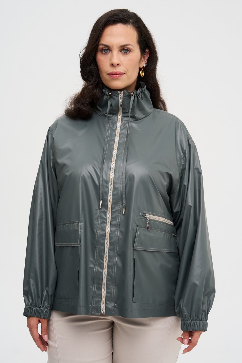 Описание: Женская ветровка больших размеров в цвете хаки от бренда Интикома (Intikoma). Ветровка на молнии, карманами и утяжкой по воротнику