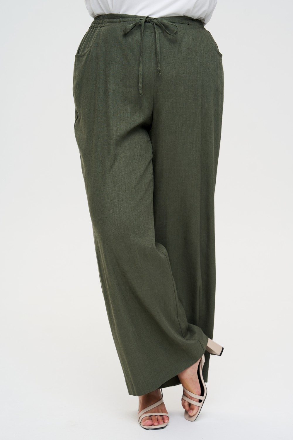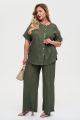 Женские летние широкие брюки больших размеров в цвете хаки из льна и хлопка от бренда Интикома (Intikoma). Стильный комплект можно составить с блузкой 825011