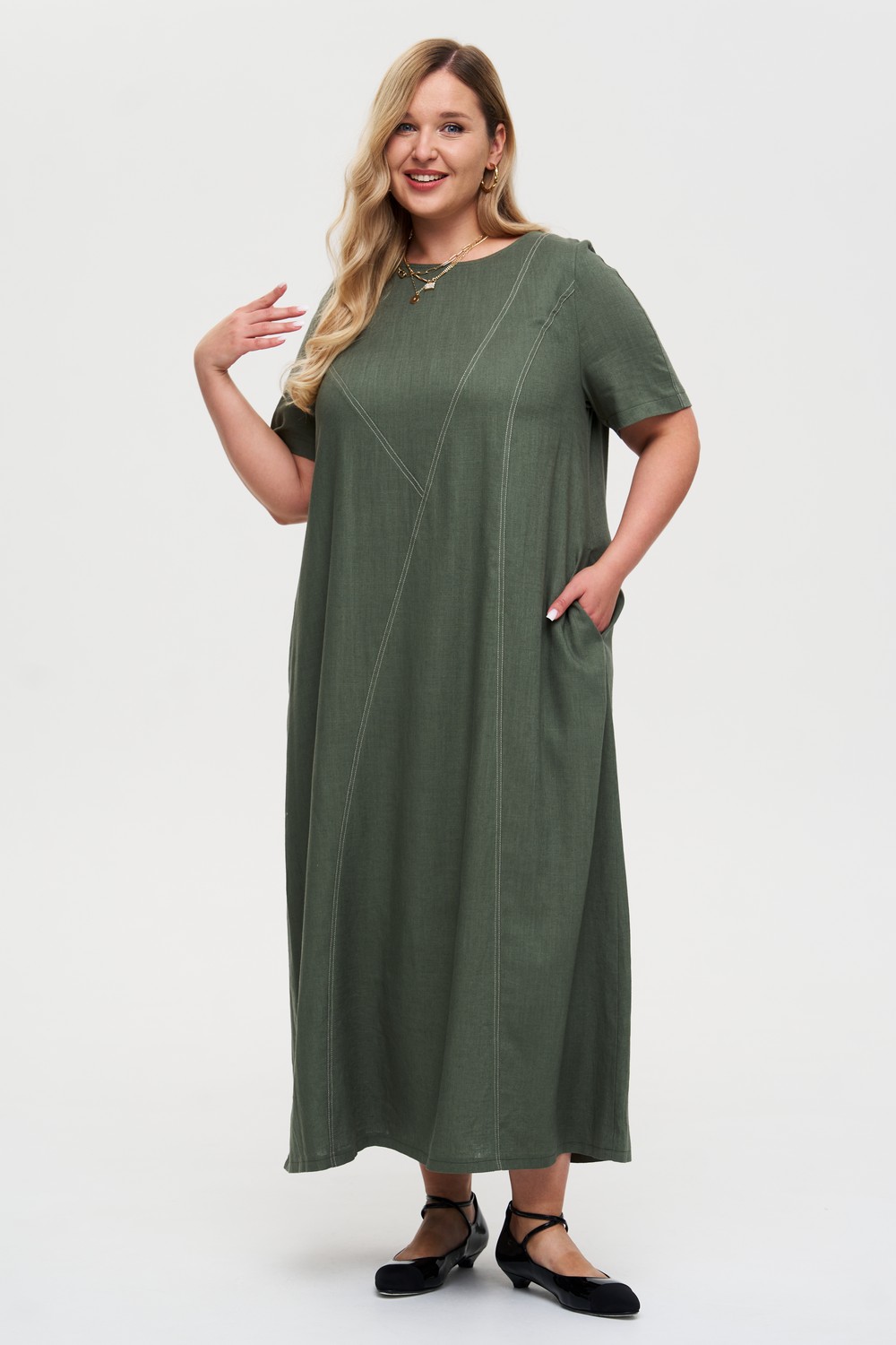 Описание: Женское макси платье больших размеров из льна в цвете хаки от бренда Интикома (Intikoma)