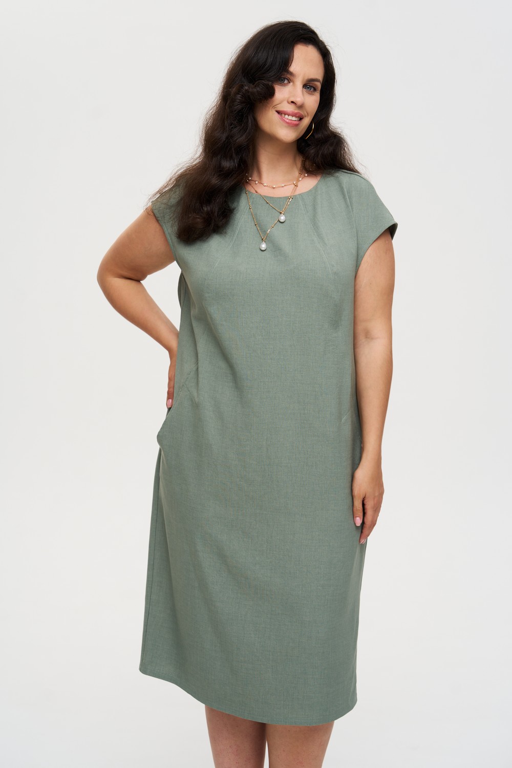 Описание: Женское прямое миди платье больших размеров с коротким рукавом в цвет хаки от бренда Интикома (Intikoma)