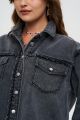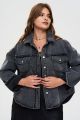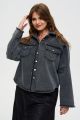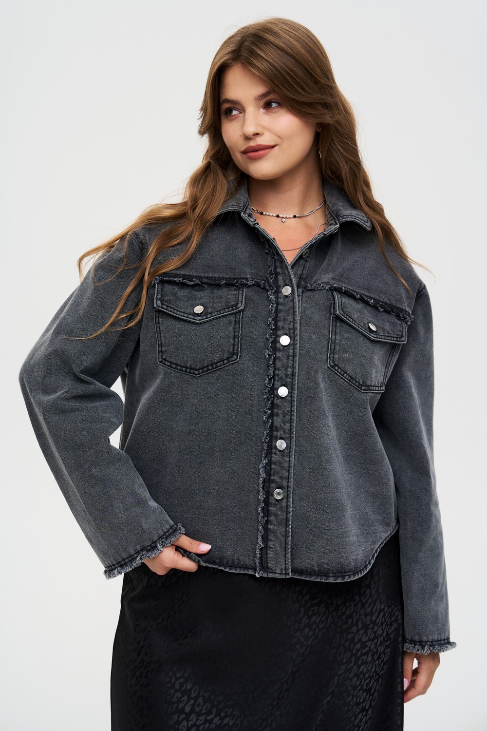 Женская серая джинсовая рубашка большого размера из хлопка от бренда Интикома (Intikoma). Детали: ассиметричная длина, отделка бахромой
