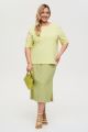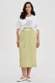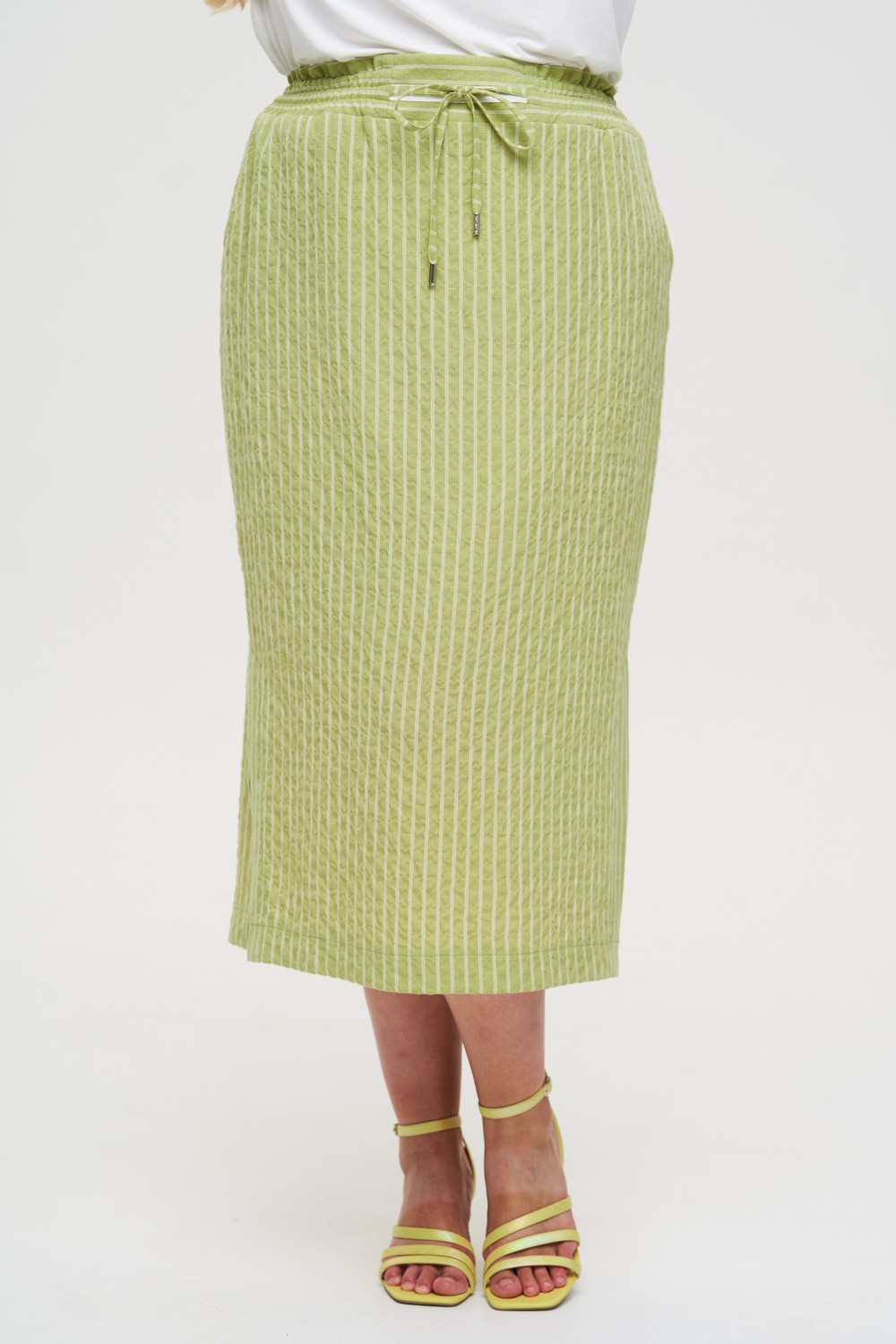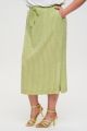 Женская салатовая в полоску миди юбка ольшого размера из смесовой ткани от бренда Интикома (Intikoma). Детали: пояс на резинке, шнурок