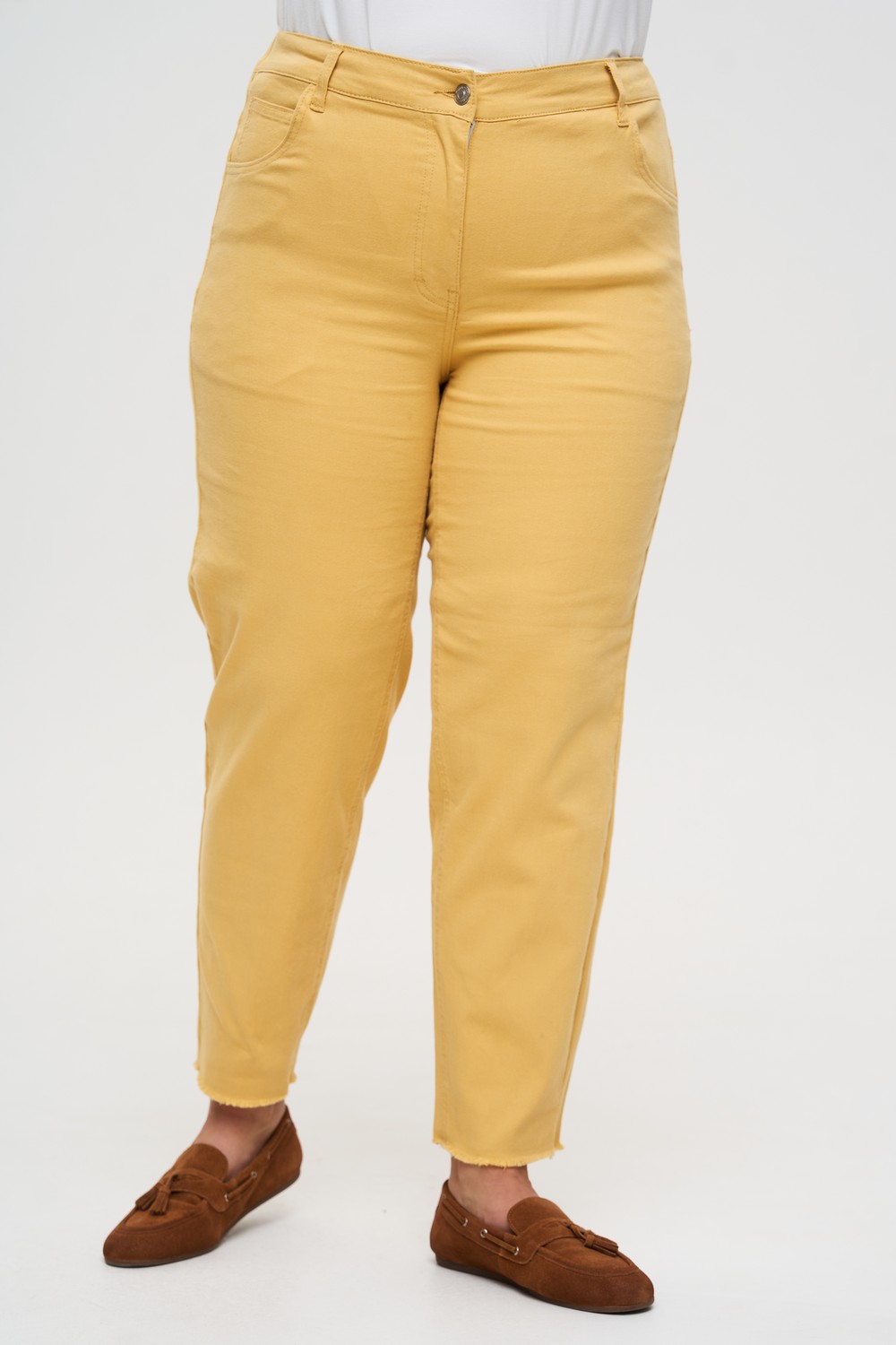 Женские желтые зауженные книзу джинсы большого размеры из хлопка от бренда Интикома (Intikoma)