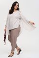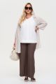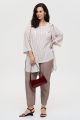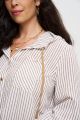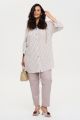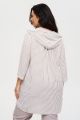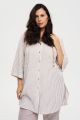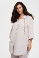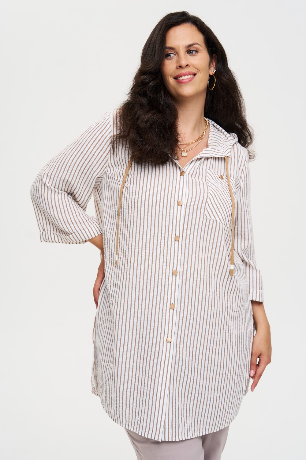 Женская бежевая удлиненная рубашка больших размеров в мелкую полоску из смесовой ткани от бренда Интикома (Intikoma). Детали: капюшон с утяжками, застежка - пуговицы