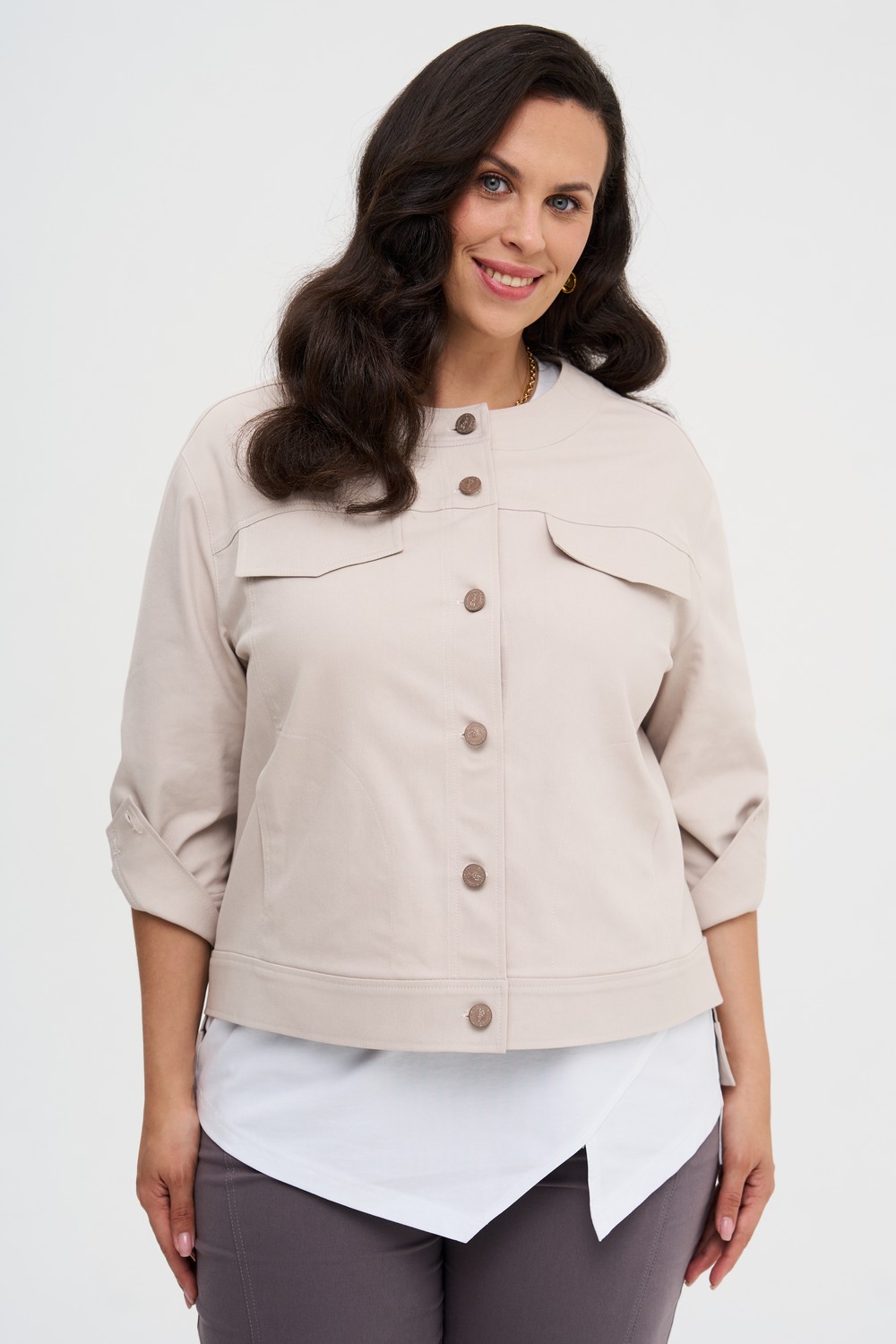 Описание: Женская бежевая удлиненная рубашка больших размеров в мелкую полоску из смесовой ткани от бренда Интикома (Intikoma). Детали: капюшон с утяжками, застежка - пуговицы