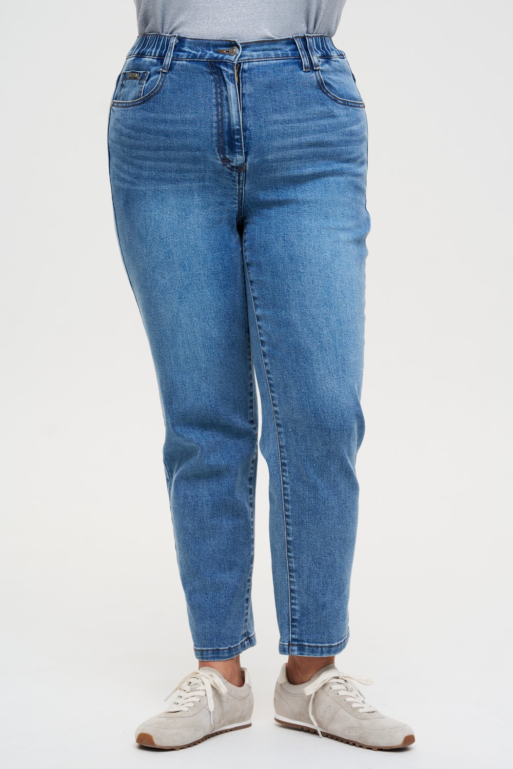 Женские голубые зауженные книзу джинсы больших размеров от бренда Интикома (Intikoma)