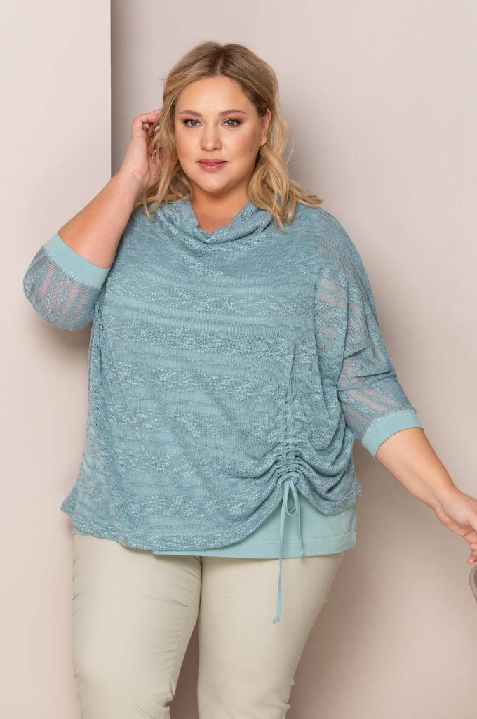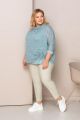 Женская мятно-зеленая блузка больших размеров из хлопка от бренда Терра (Terra). Блузка представляет собой комплект: верхняя блуза из ажурного трипотажа прямого кроя и трикотаная майка внутри