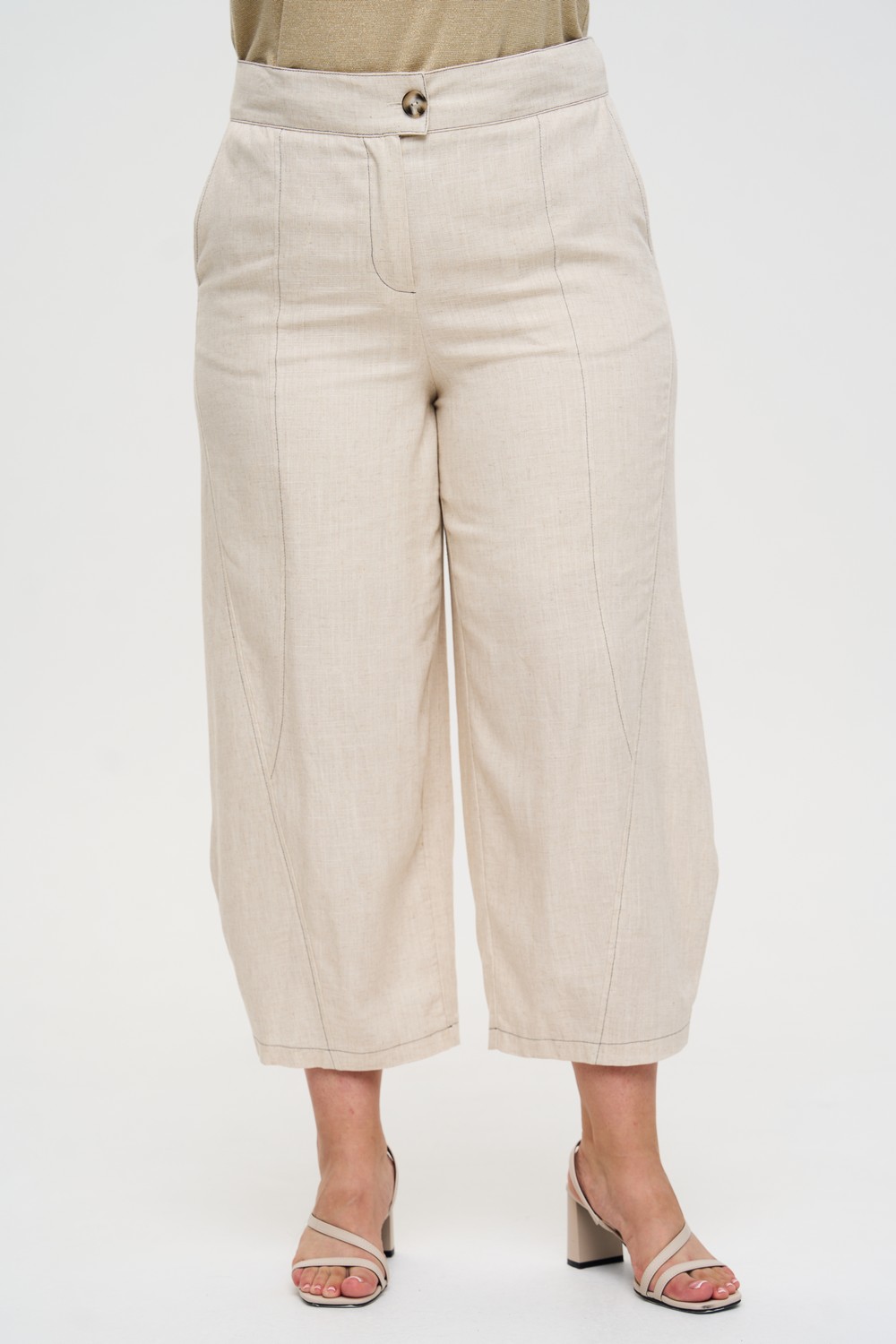 Женские бежевые брюки бананы больших размеров из хлопка и льна от бренда Интикома (Intikoma). Брюки свободного кроя. Стильный комплект можно собрать с акетом 525027