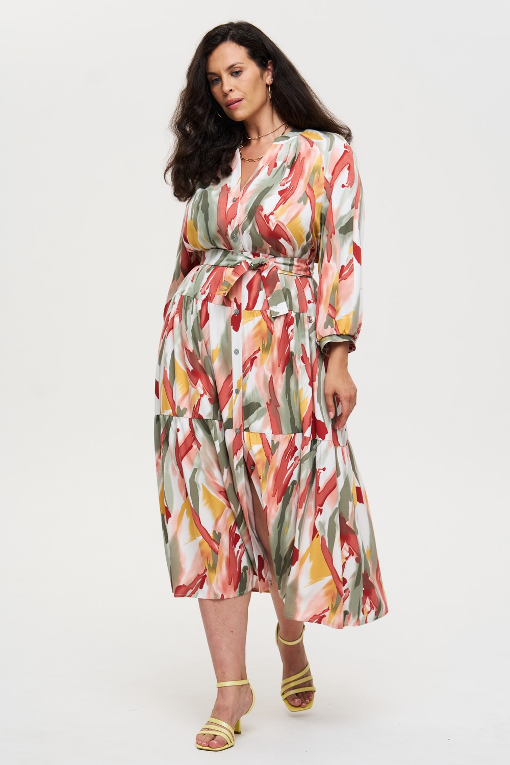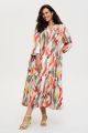 Женское разноцветное макси платье больших размеров из всикозы от бренда Интикома (Intikoma). Платье в комплекте с поясом