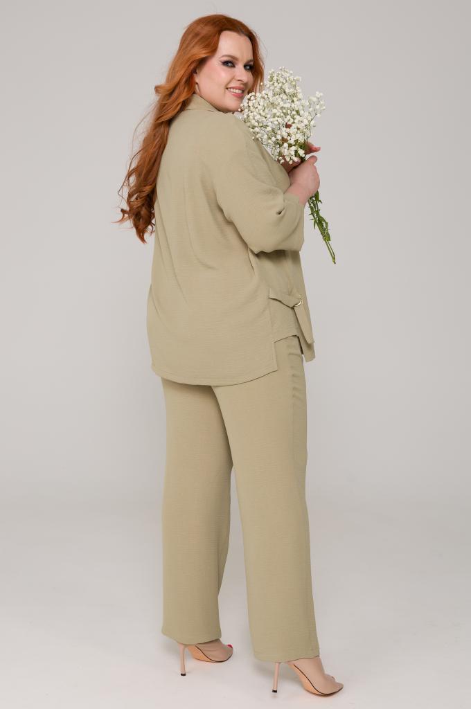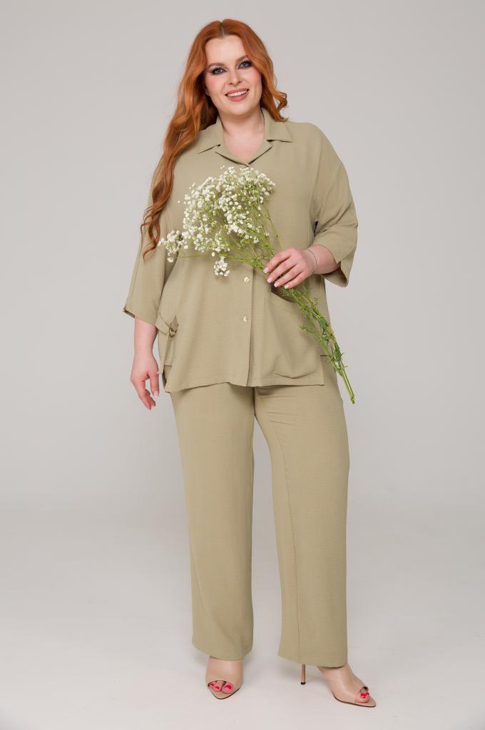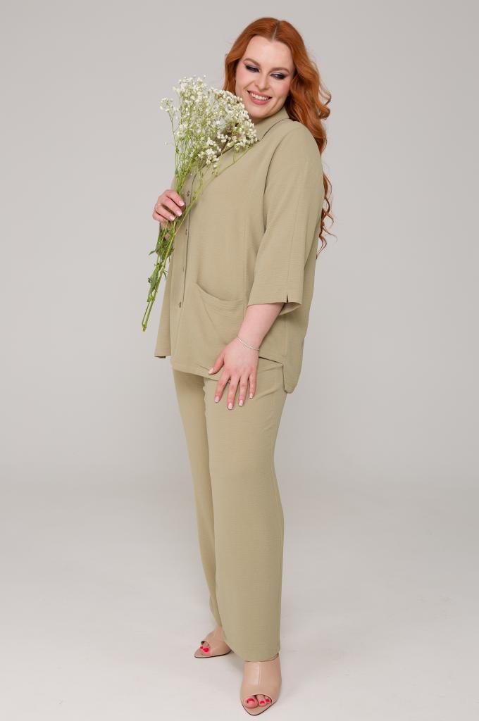 Женская оливковая блузка больших размеров из смесовой ткани от бренда Терра (Terra). Рукав 3/4, застежка на пуговицах. Стильный комплект можно составить с брюками ВК25-038