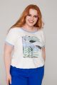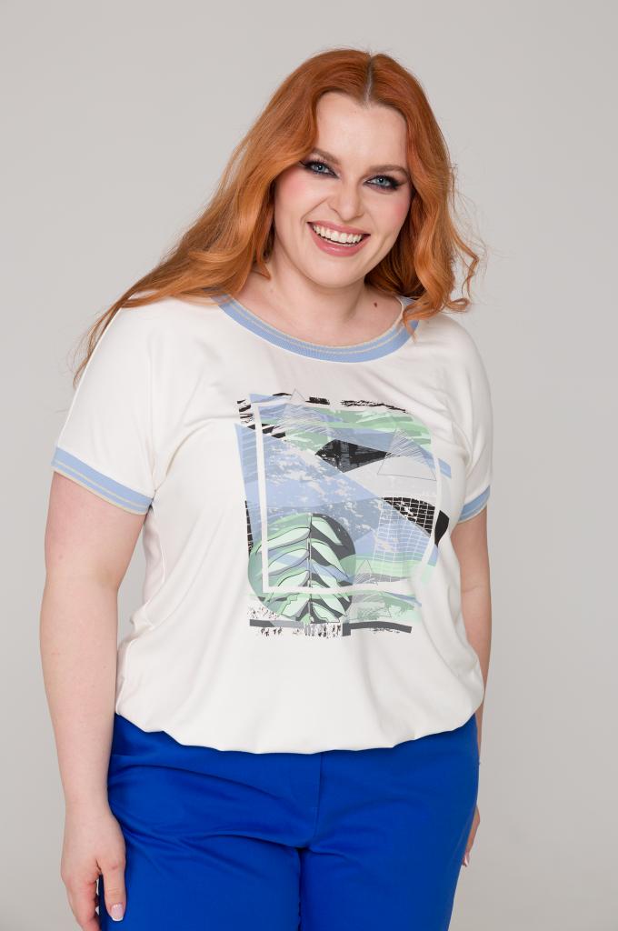 Описание: Женская белая блузка с голубым принтом больших размеров из смесовой ткани от бренда Терра (Terra). Сочетать можно с любыми брюками, юбкой, джинсами