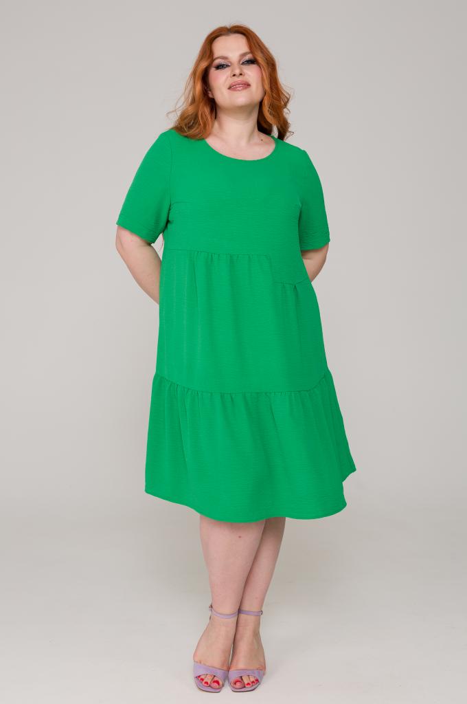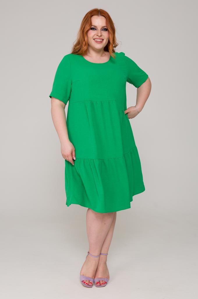 Описание: Женское короткое зеленое летнее платье большого размера от бренда Terra (Терра). Платье выполнено из смесовой дышащей ткани