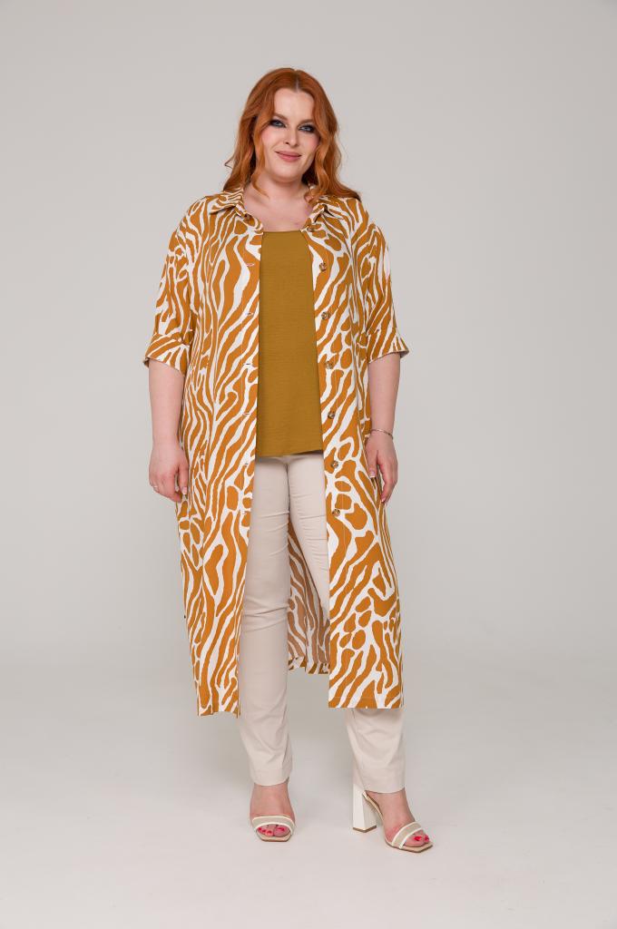 Женский горчичный топ больших размеров из смесовой ткани от бренда Terra (Терра)