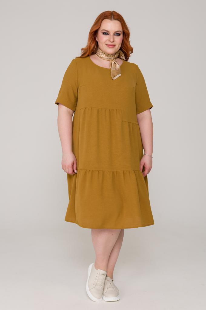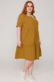 Женское короткое горчичное летнее платье большого размера от бренда Terra (Терра). Платье выполнено из смесовой дышащей ткани