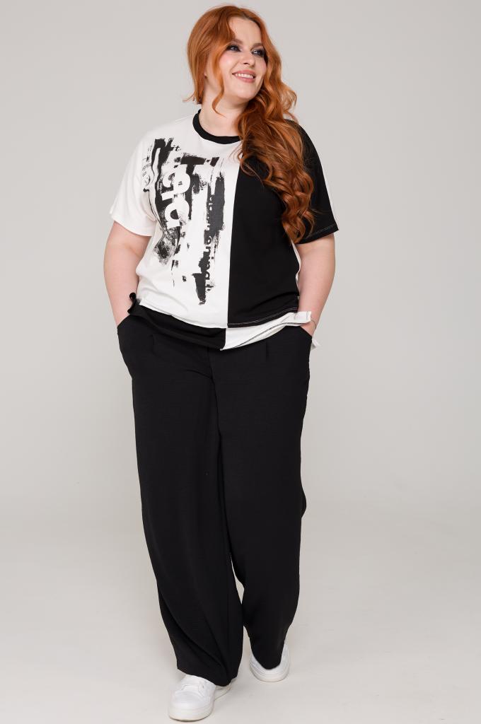 Описание: Женские черные широкие брюки больших размеров из смесовой ткани от бренда Терра (Terra)