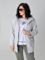 Женская светло-серая весенняя ветровка больших размеров прямого силуэта с легким заужением книзу от бренда Dizzy way (Диззи вэй). Ветровка хорошо садится на любую фигуру. Застежка на двухзамковую молнию позволяет расстегнуть изделие как сверху, так и снизу. Воротник - стойка, переходящая в регулируемый капюшон. Длину рукава-реглан можно регулировать отворотом. Предусмотрены удобные прорезные карманы с молнией для хранения мелочей. Есть внутренний кармашек на молнии. Подкладка в изделии выполнена из поливискозы