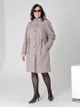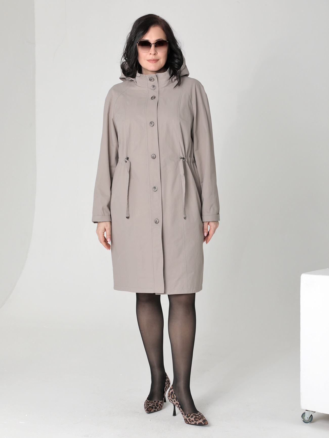 Женский серо-бежевый весенний плащ больших размеров средней длины прямого силуэта от бренда Dizzy Way (Диззи вэй). Рукав - покроя реглан, застежка на петли и пуговицы. Воротник - стойка с отстегивающимся капюшоном. Есть внутренний кармашек на молнии. Силуэт плаща можно менять с помощью затяжки по линии талии. плащ из хлопкосодержащей ткани с водоотталкивающей пропиткой хорошо садится на любую фигуру.