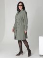 Описание: Женский плащ-тренч больших размеров в цвете хаки средней длины прямого силуэта с поясом от бренда Dizzy way (Диззи вэй). Застежка на петли и пуговицы, воротник, отлетная кокетка, погоны на рукавах-реглан и шлица на спинке. Хлопковая плащевая ткань имеет водоотталкивающую пропитку. Подкладка из поливискозы