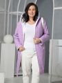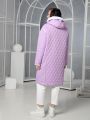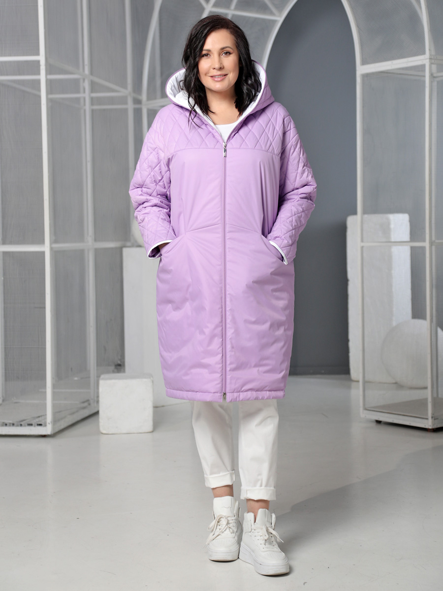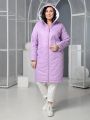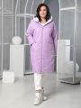 Женский сиреневый утепленный плащ больших размеров прямого силуэта с капюшоном от бренда Dizzy way (Диззи вэй). Застежка - на двухзамковую молнию, что позволяет легко расстегнуть ее как сверху, так и снизу. Плащевая ткань имеет водоотталкивающую пропитку