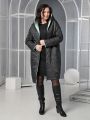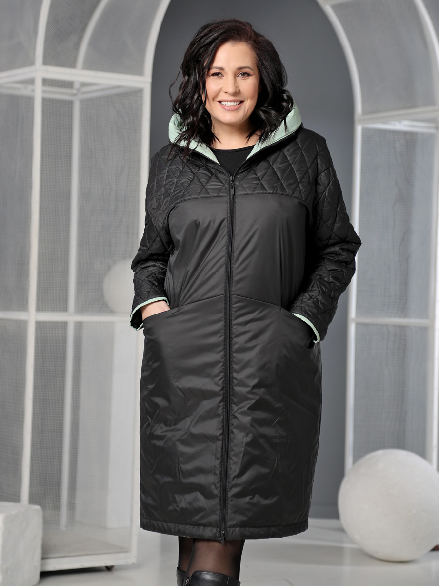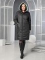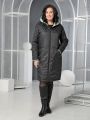 Женский черный утепленный плащ больших размеров прямого силуэта с капюшоном от бренда Dizzy way (Диззи вэй). Застежка - на двухзамковую молнию, что позволяет легко расстегнуть ее как сверху, так и снизу. Плащевая ткань имеет водоотталкивающую пропитку