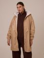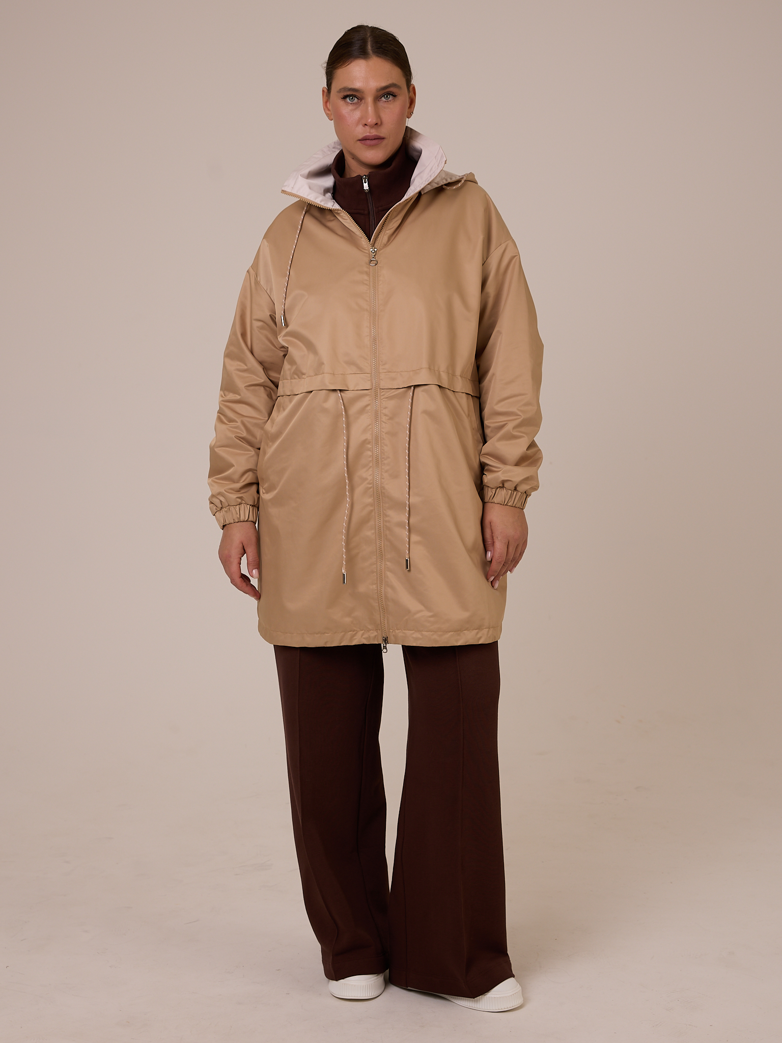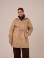 Женская бежевая демисезонная парка больших размеров от бренда Модресс (Modress). Парка прямого свободного кроя с кулиской на талии. Воротник- стойка. Есть съемный капюшон. Рукава спущенные с манжетами на резинке. Боковые карманы на молнии. По низу изделия выполнена кулиска с регулируемой резинкой. Парка застегивается на молнию. Выполнена из плотной курточной ткани с водоотталкивающими свойствами
