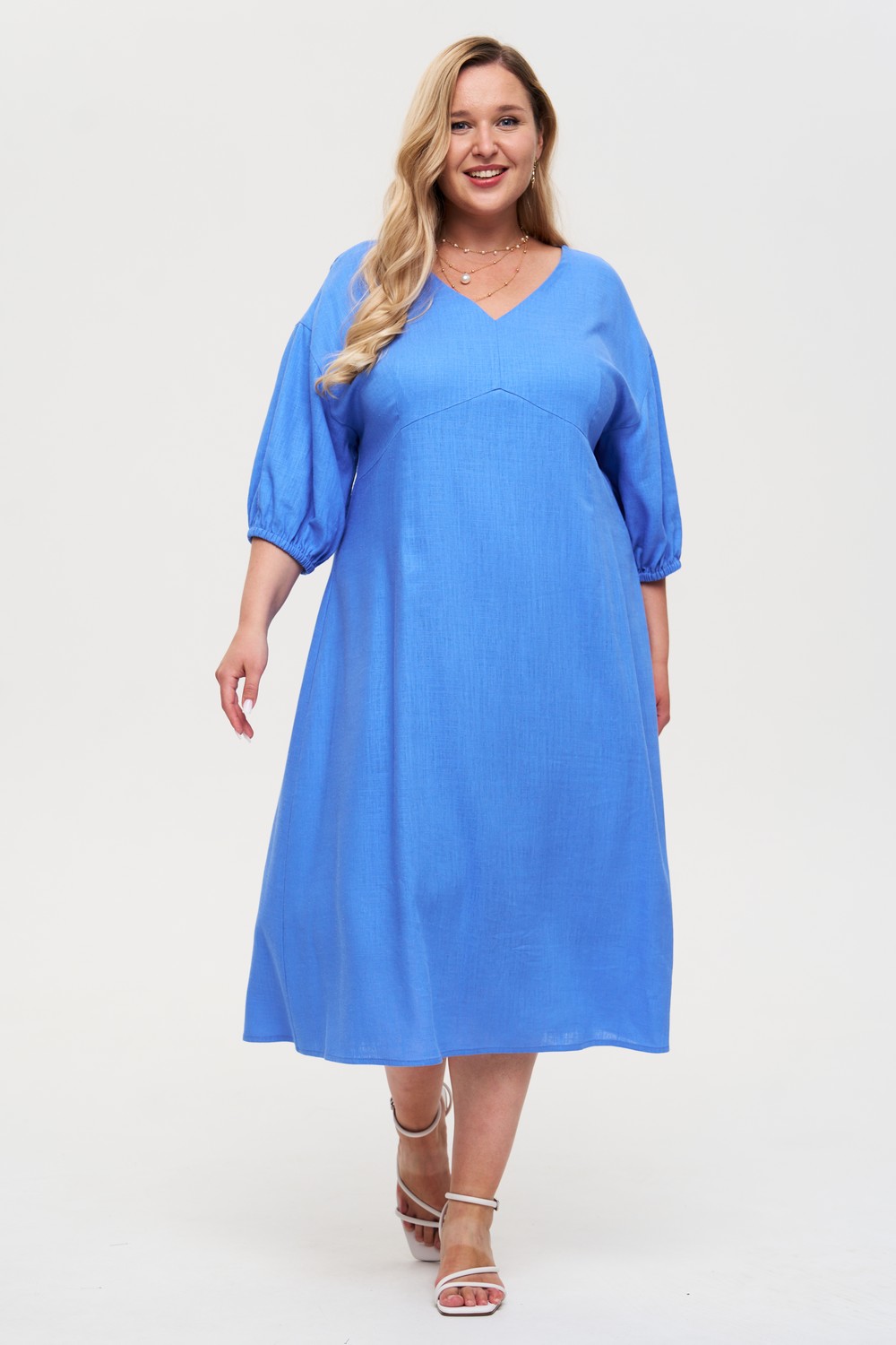 Описание: Женское голубое летнее макси платье ольшого размера из льна и хлопка от бренда Интикома (Intikoma)