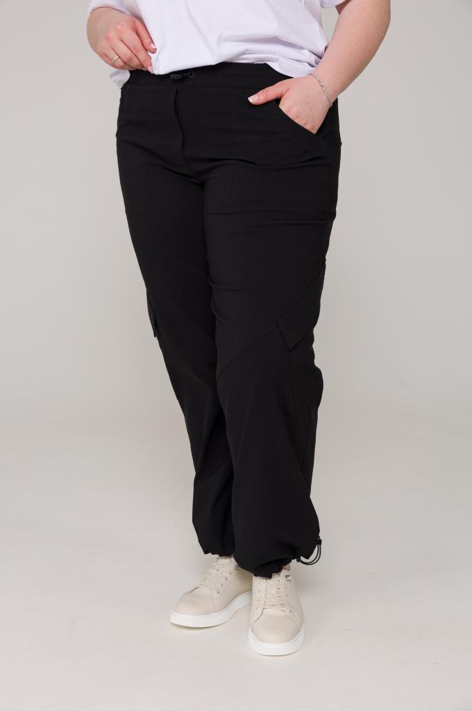 Женские черные брюки карго больших размеров из смесовой ткани от бренда Terra (Терра)