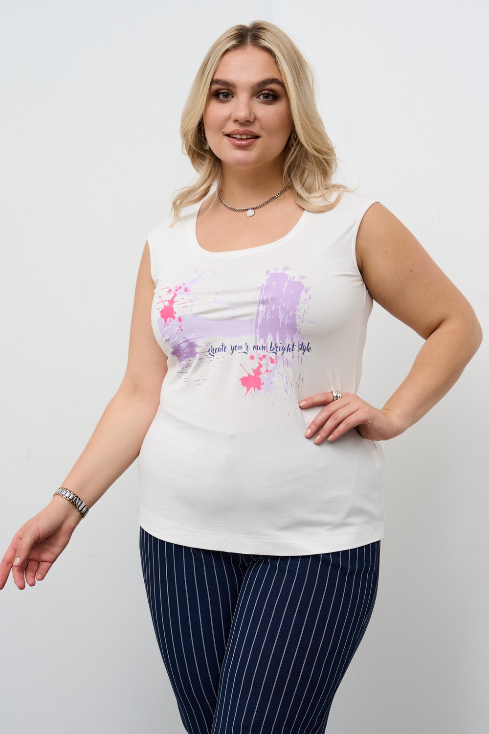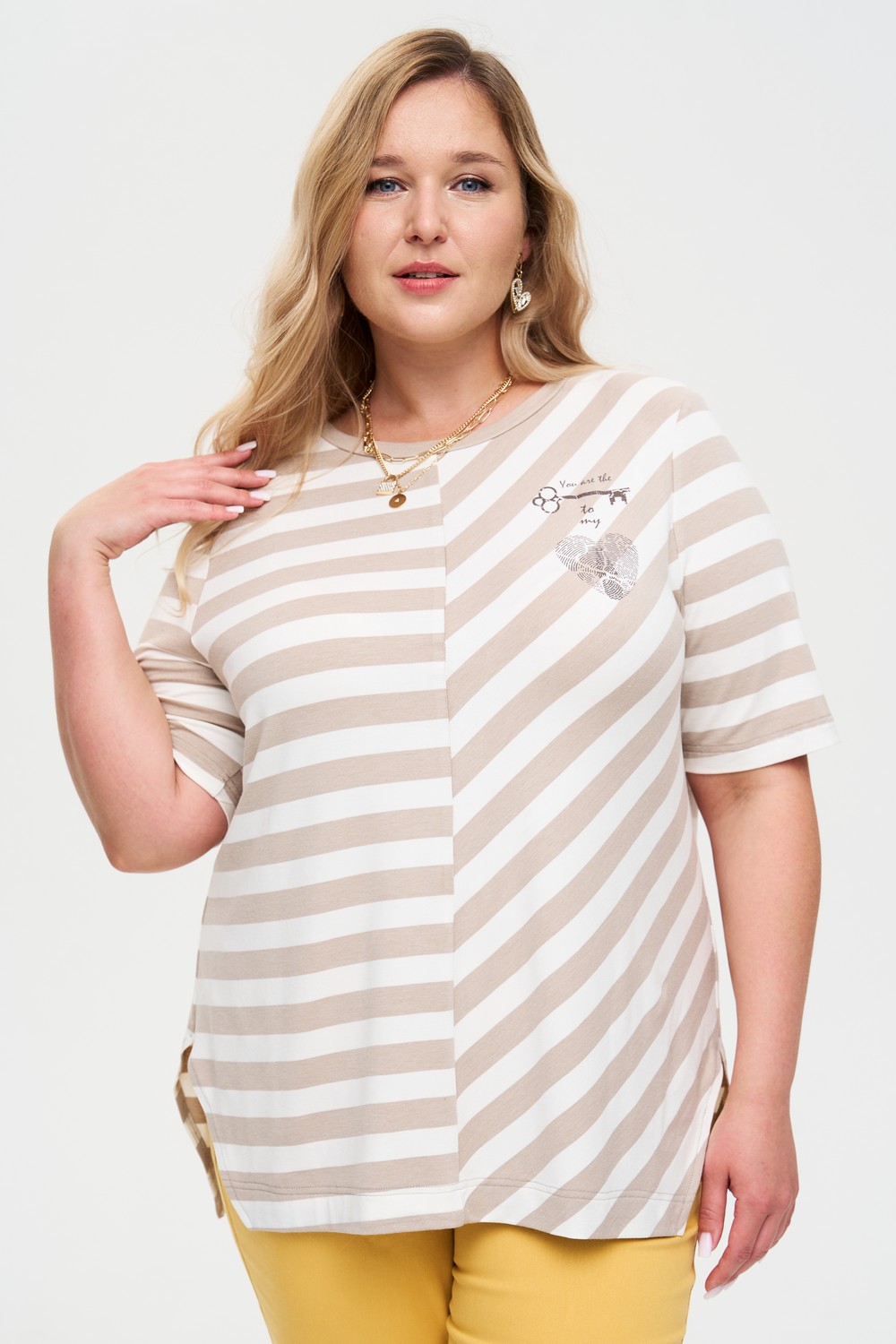 Женская бежевая в полоску блузка больших размеров из хлопка от бренда Интикома (Intikoma)