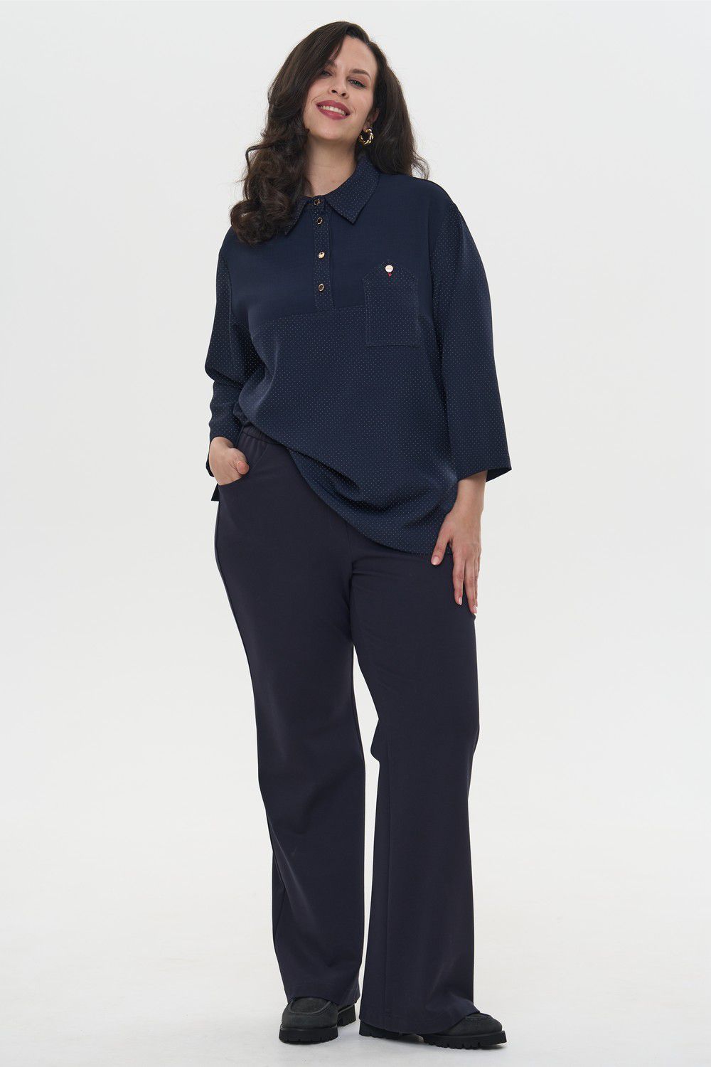 Описание: Женские бежевые прямые со стрелкой брюки больших размеров из смесовой ткани от бренда Интикома (Intikoma)