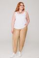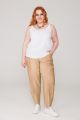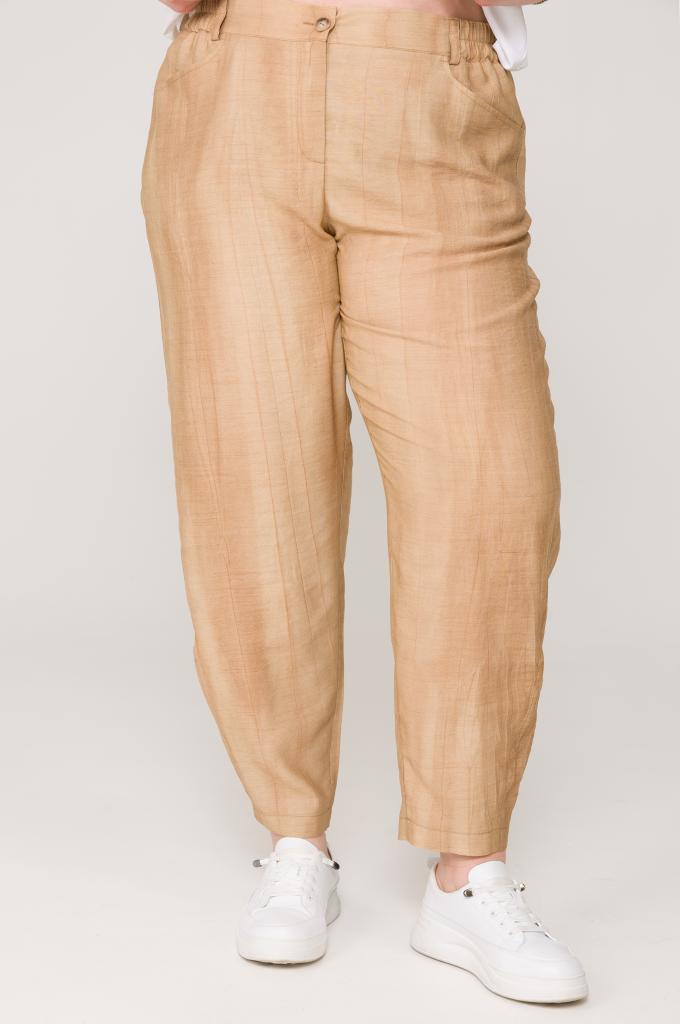 Женские песочные брюки-бананы больших размеров зауженные книзу из смесовой ткани от бренда Terra (Терра). Брюки с принтом в широкую полоску, талия на резинке. Стильный комплект можно собрать с жакетом ВК25-048