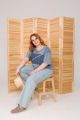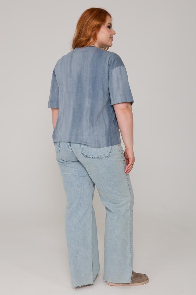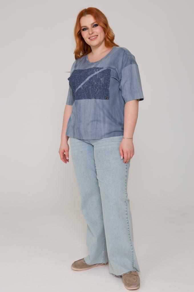 Описание: Женская хлопковая блузка больших размеров в цвете деним с принтом от бренда Терра (Terra)
