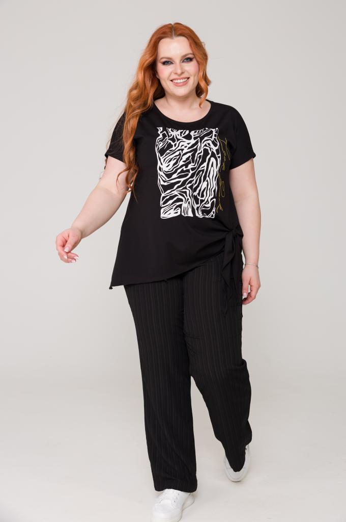 Женские черные в полоску брюки большого размера от бренда Terra (Терра). Стильный комплект модно составить с блузкой ВК25-039
