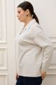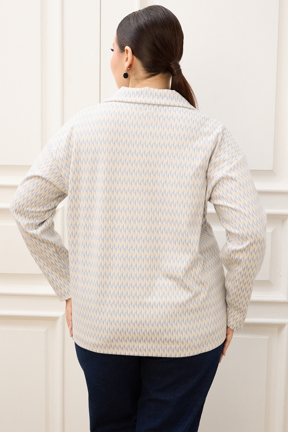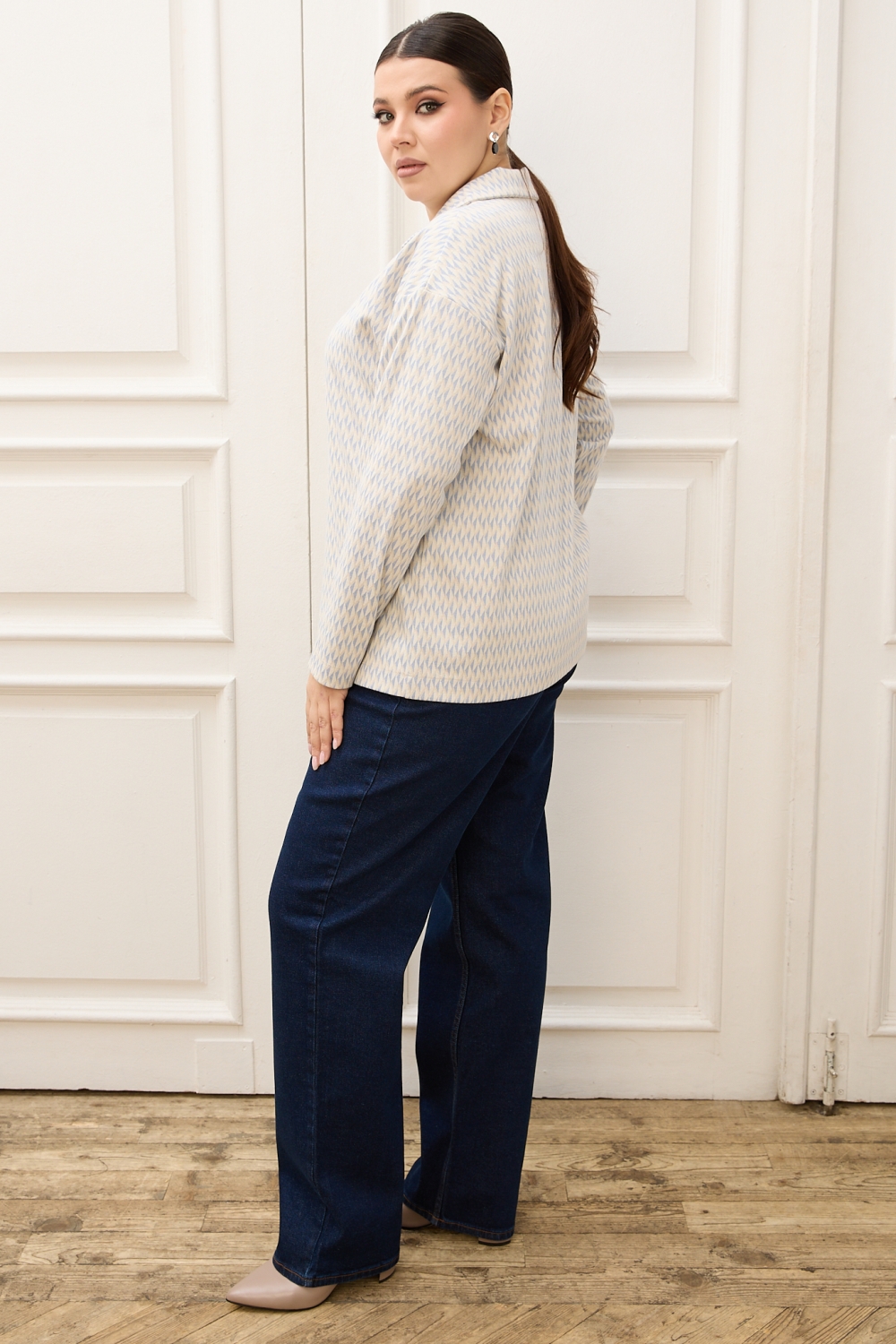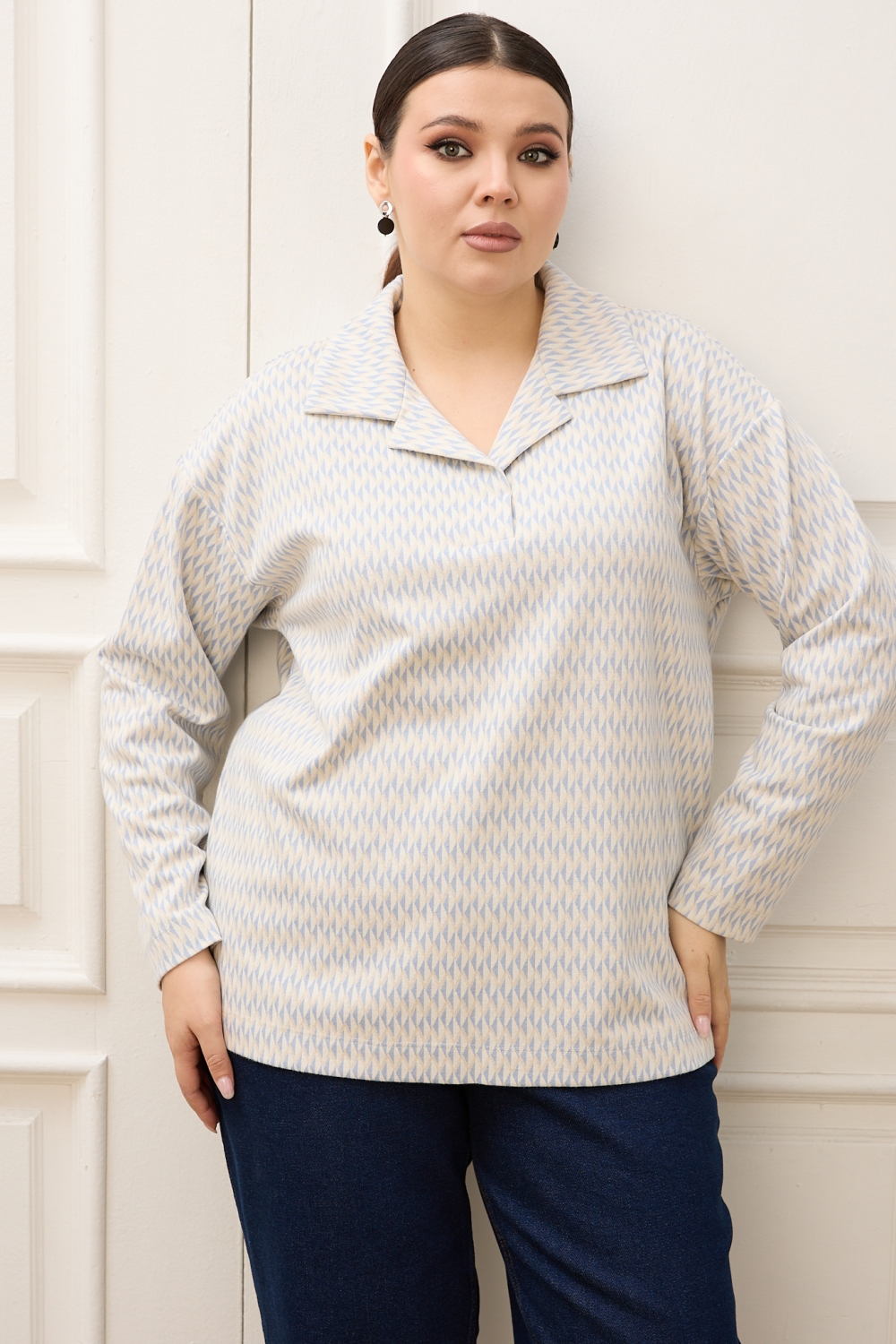 Женский голубой трикотажный свитшот-поло большого размера от бренда Modress (Модресс). Свитшот свободного прямого кроя и воротников поло